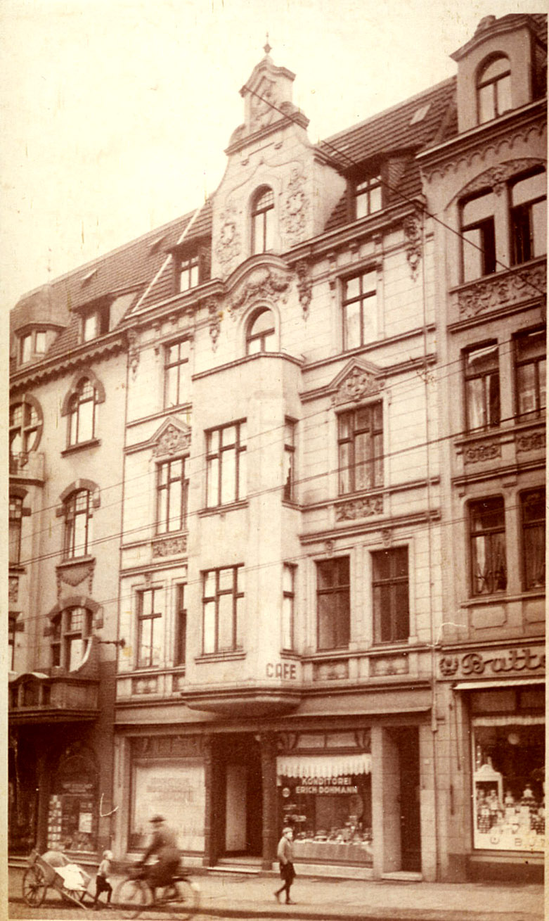 Das Wohnhaus der Familie Oexle in der Hattinger Straße 15 - heute Alte Hattinger Str. Im Erdgeschoß damals noch dort ansässig: das in Bochum weithin bekannte Café Konditorei Erich Döhmann. (Ansicht noch größer sehen - klicken! ) |