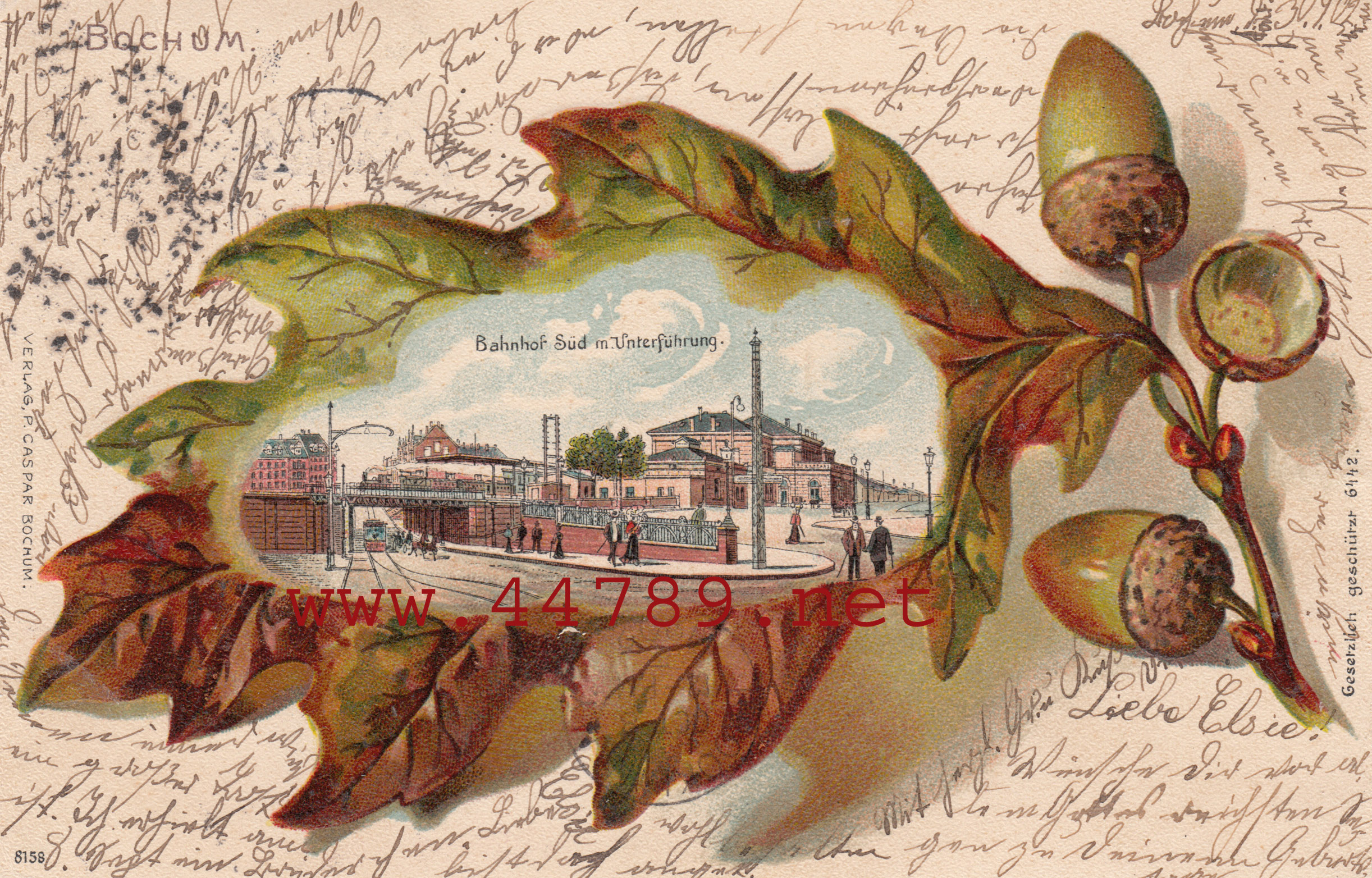 Ansichtskarte, benutzt 1907. links Fußgängertreppenabgang zur tiefer gelegenen Hattinger Straße - im Bereich der Unterführung im Volksmund schlicht "Mausefalle" genannt. (Foto noch größer sehen - hier klicken!) |