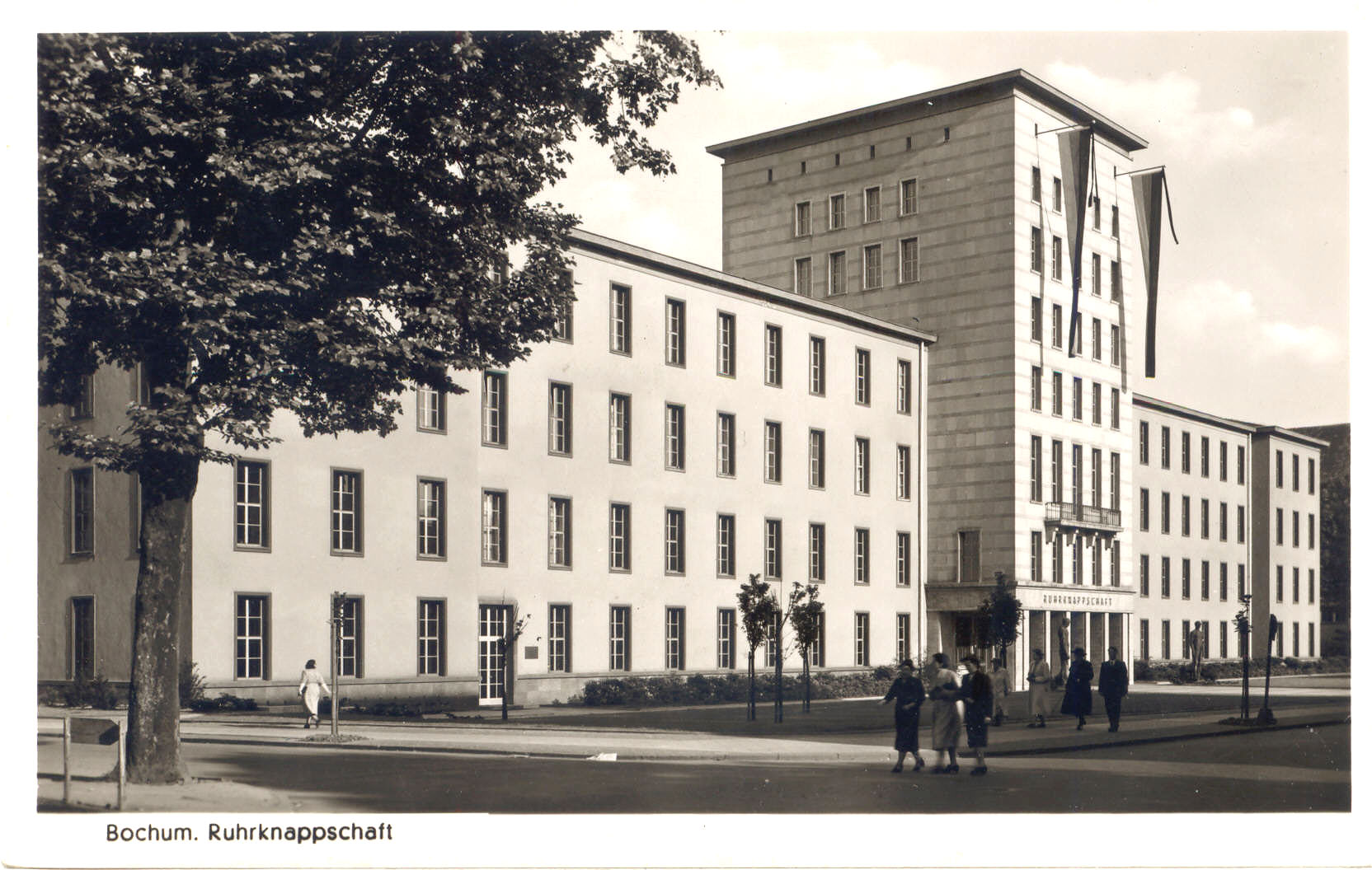 Ansichtskarte von 1910. Gebäude der Hauptverwaltung, offenbar kurz nach dessen Fertigstellung. Im Vordergrund kreuzen sich die Weiherstraße und Pieperstraße, Blickrichtung nach Süd-Westen. Lesen Sie Informationen zur Geschichte