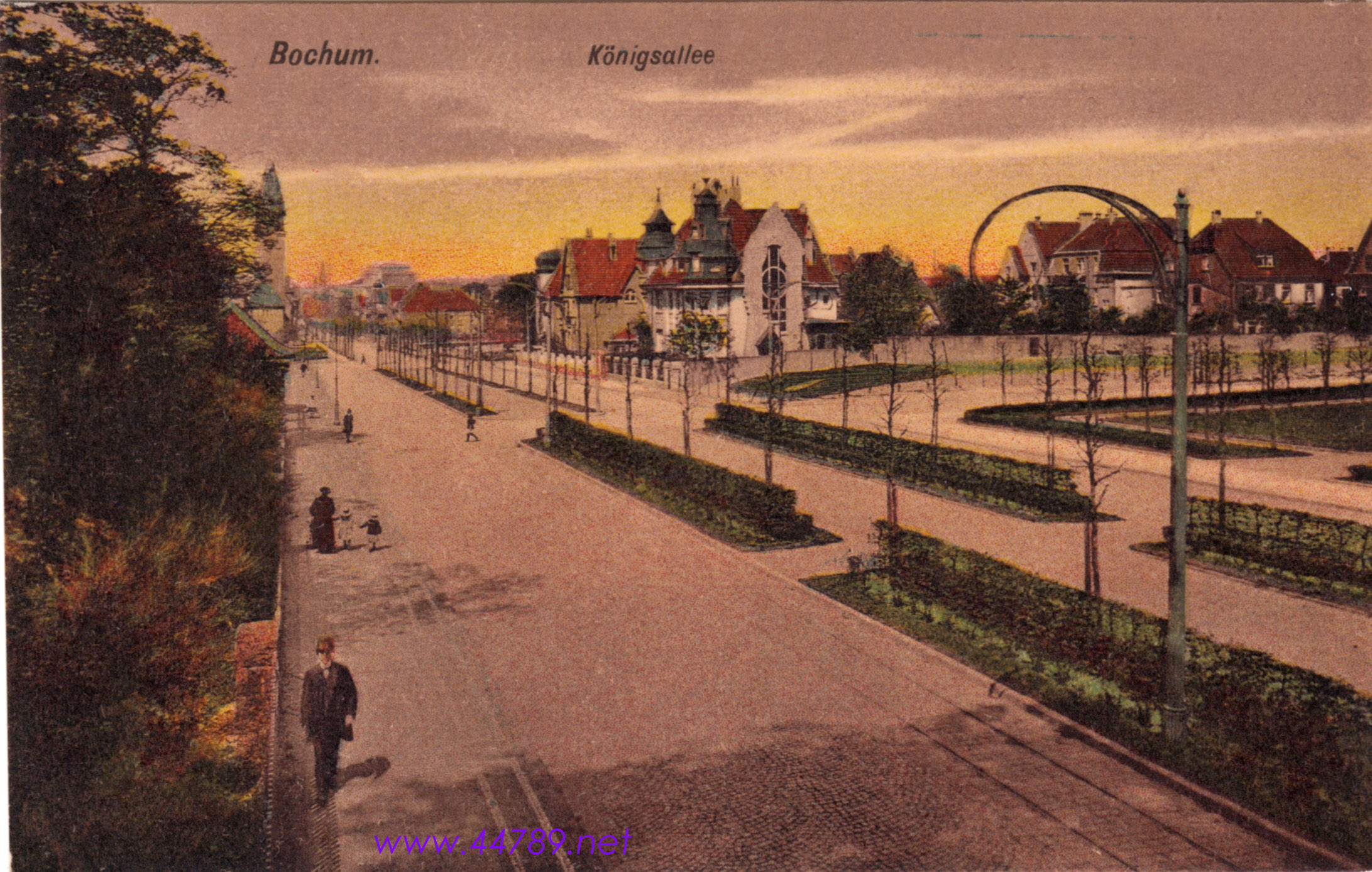 Ansichtskarte, etwa 1944. Schöne Ansicht aus einer Postkarte heraus kopiert, deutlich sichtbar ein Straßenbahnzug der BoGeStra Linie 5, die auch noch in der Nachkriegszeit diese Strecke einige Jahre befuhr. (Foto noch größer sehen - hier klicken!) |