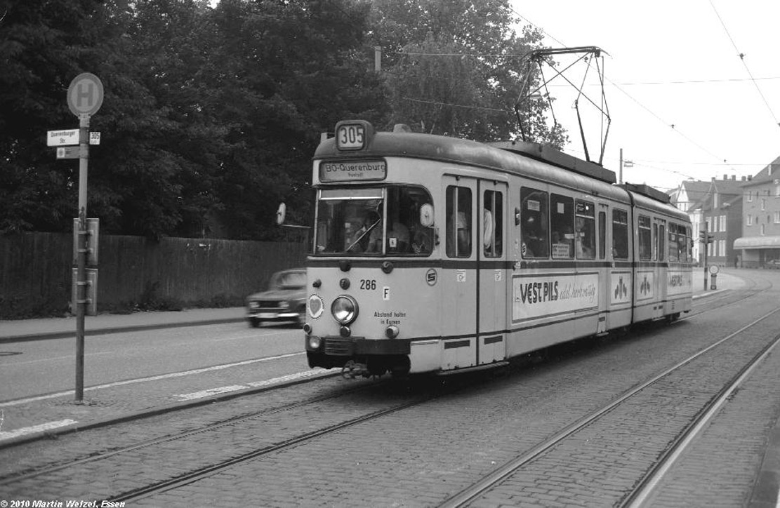 Privates Foto von Martin Welzel, mehr hierzu auch im Forum: Drehscheibe Foren" Gesehen von der Mittelinsel der Universitätsstraße, Blickrichtung Innenstadt. Heute ist der Mittelstreifen zwischen den Fahrbahnen begrünt und die 305 fährt als U35 unterirdisch. Links erkennt man einen Bauzaun, das Gebäude der Landeszentralbank entstand in diesen Jahren und wurde 1983/84 in Betrieb genommen. (Foto noch größer sehen - hier klicken!) |