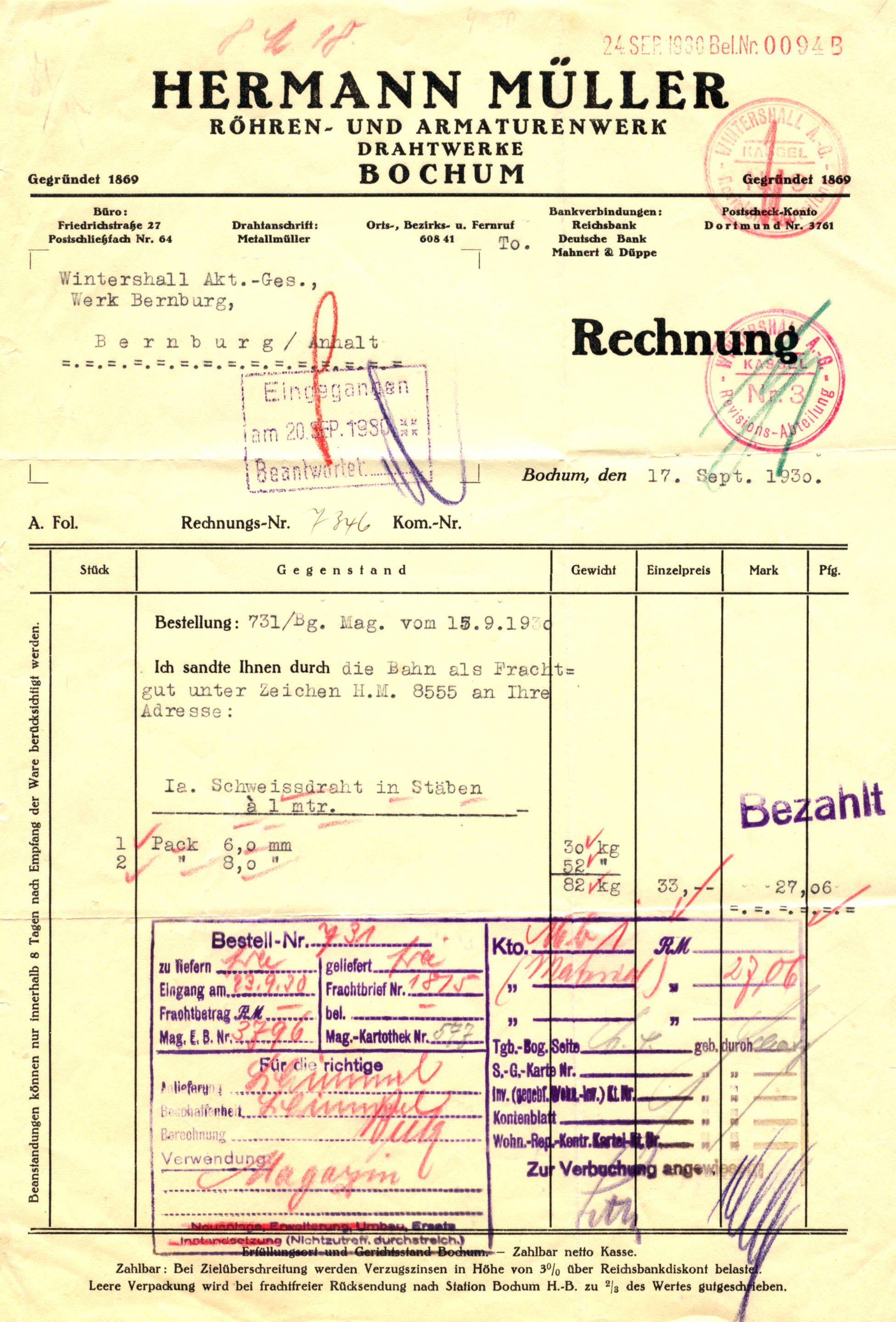 (Rechnungskopf, um 1930) Die Firma Wupper befand sich in der Hattinger Straße 22 - siehe auch: Bildergalerie Hattingerstr. dort gibt es ein Foto von diesem Haus aus den 1920er Jahren. |