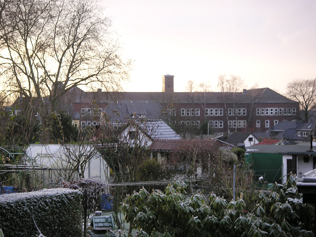 Privates Foto vom 01.01.2008. Gesehen von der stillgelegten Bahnlinie (Zechenanschlußbahn bis alter Bahnhof Weitmar) hinter dem Schrebergarten des KgV Bochum Ehrenfeld über die Ostermannstraße hinweg. (Foto noch größer sehen - klicken!) |