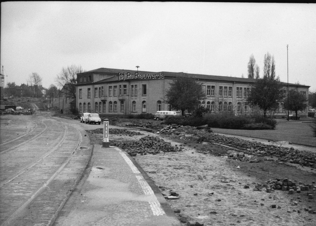 (Foto von 1965) diesselbe Stelle, wie oben, nur ca. 2 Jahre später. Es wurde bereits mit den Bauarbeiten für die Universitätsstraße begonnen, im Hintergrund links im Bild verläuft heute die Brücke mit Überführung von Steinring/Waldring. (Foto noch größer sehen - klicken!) |