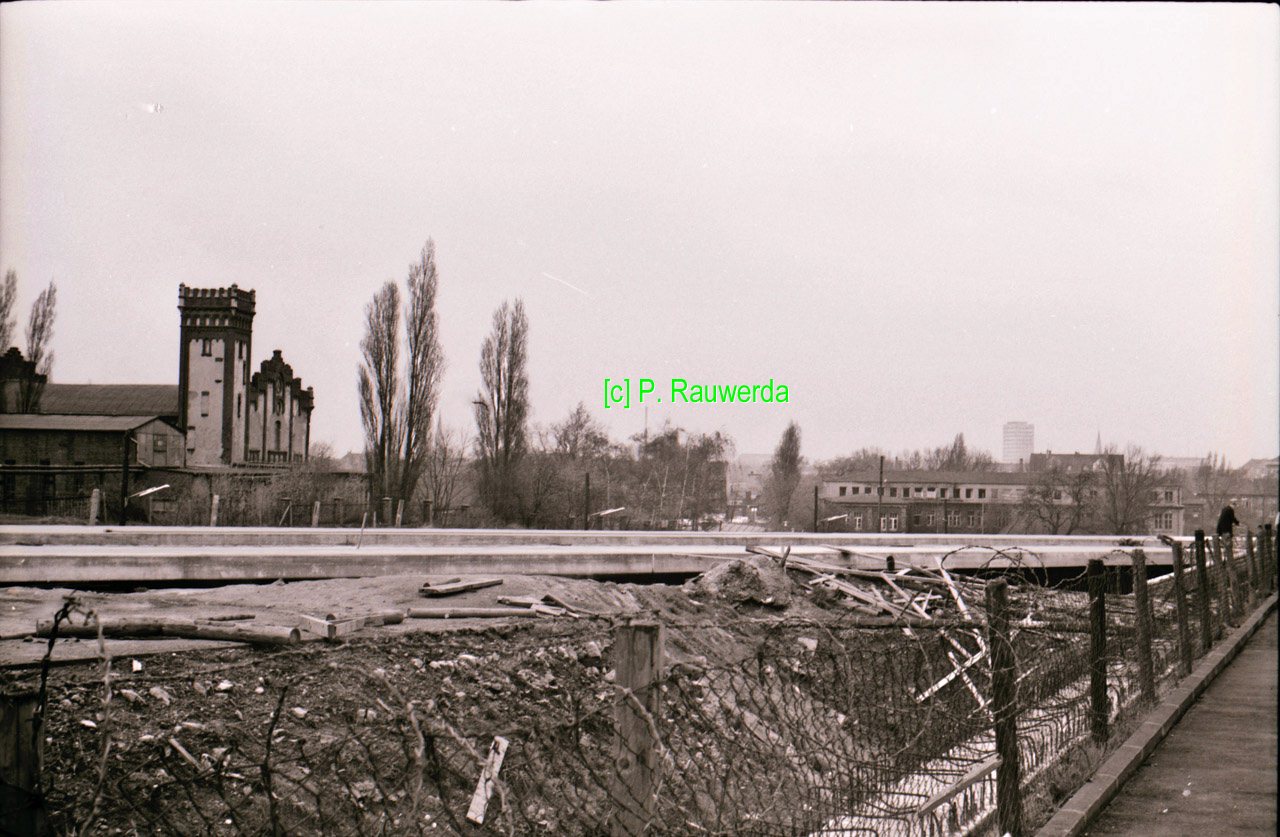(Aufnahme von 1963) Hier gesehen aus etwas größerer Entfernung, im Hintergrund rechts der Turm der Melanchthonkirche und davor einige Wohnhäuser an der Ecke Knepperstraße / Grünstraße (heutige Arnikastr.) (Foto noch größer sehen - klicken!) |