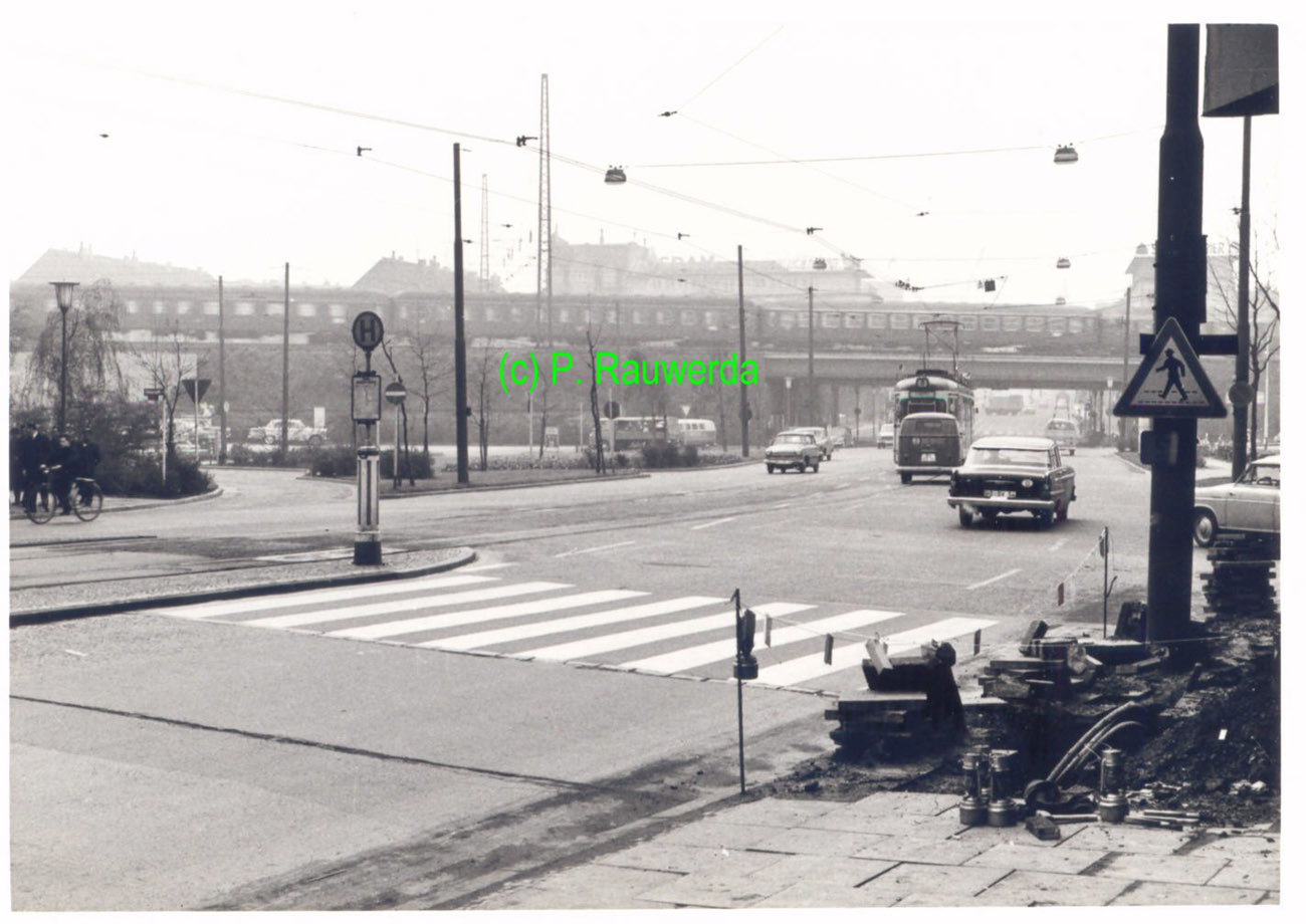 (Aufnahme von 1966) Gesehen stadteinwärts, links die Hubertus-Apotheke (heute Apotheke am Schauspielhaus) (Foto noch größer sehen - klicken!) |