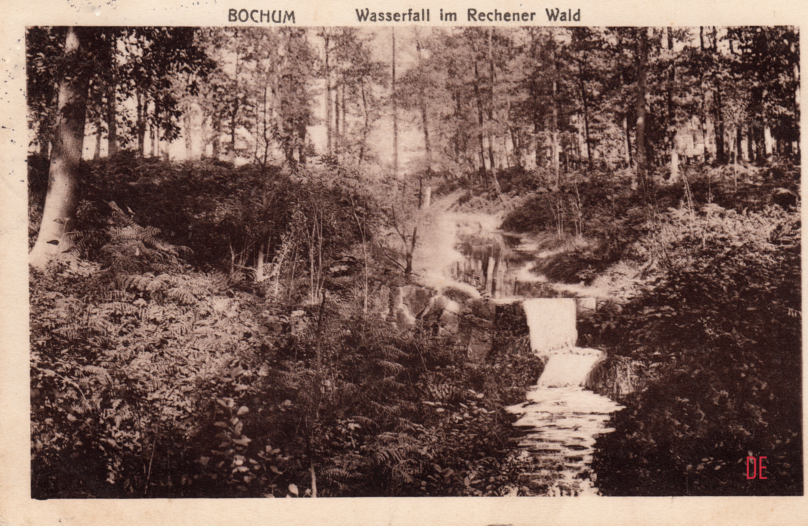 auf einer Postkarte von 1914. ebenfalls nahe der Hunscheidstr./Marschnerstr. Aufgrund der bergbaulichen Verändungen mit Absenkung des Grundwasserspiegels bis in die Neuzeit heute leider kein fliessendes Gewässer mehr in diesem Bereich. (Foto noch größer sehen - hier klicken!) |