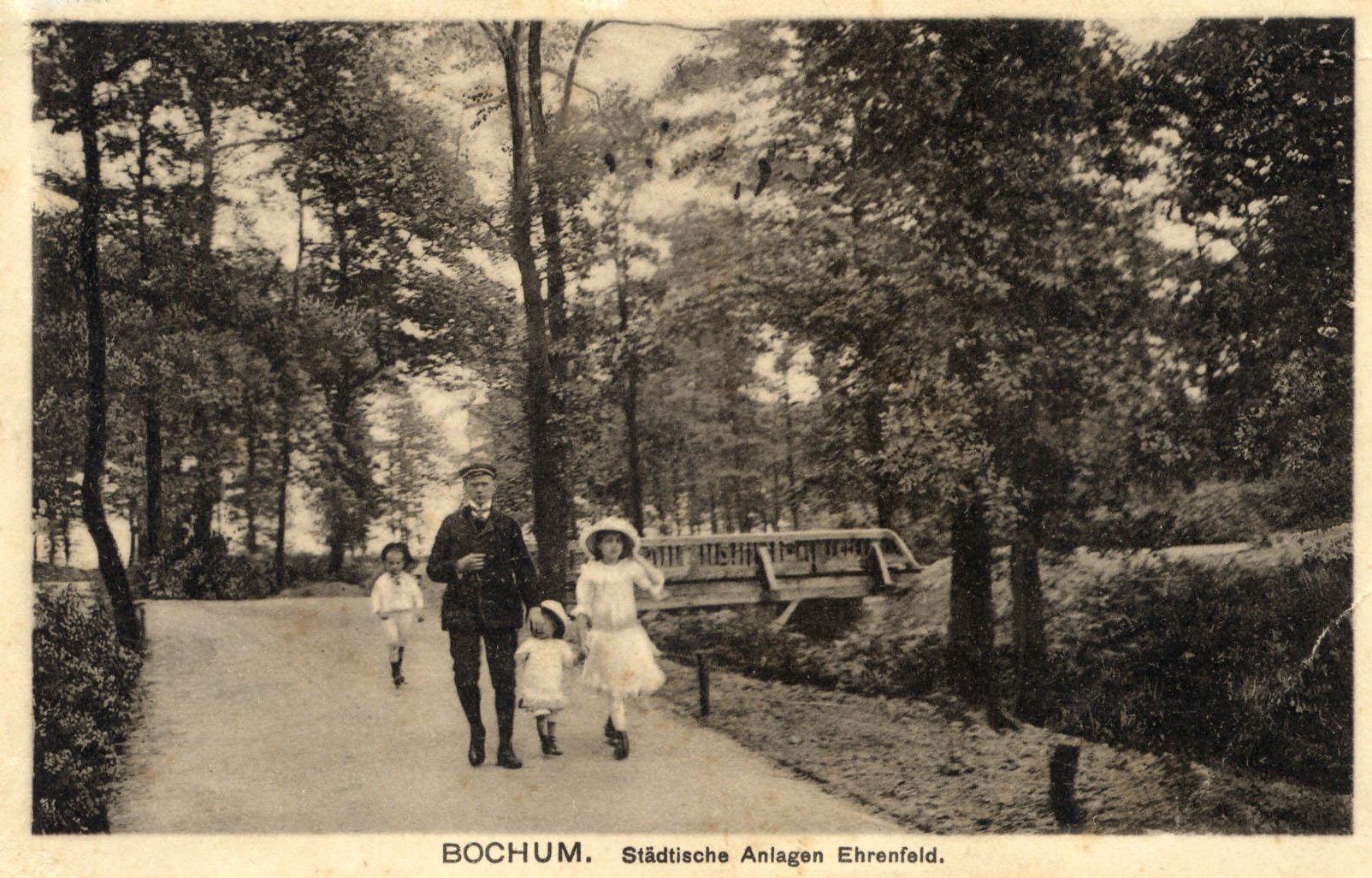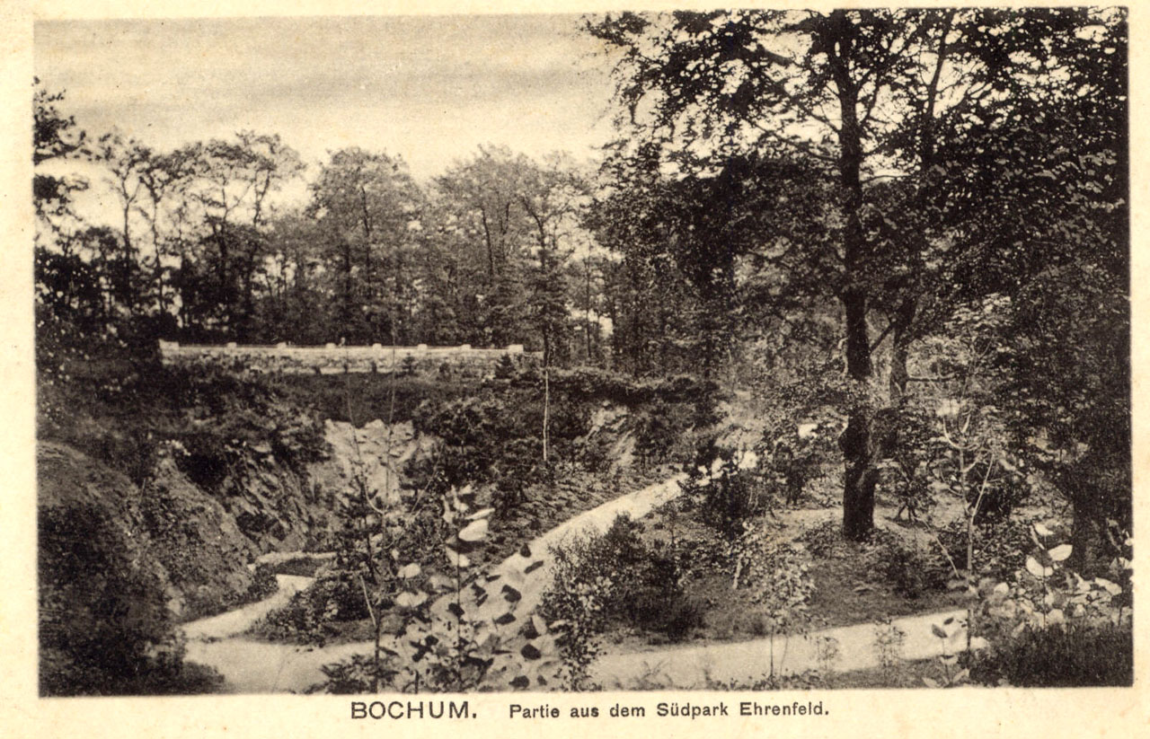 auf einer Postkarte von 1919. offenbar auch am ehemaligen Teich mit Aufgang Richtung Waldring/Hunscheidtstr. (siehe auch ähnl. Ansichten weiter unten) (Foto noch größer sehen - hier klicken!) |
