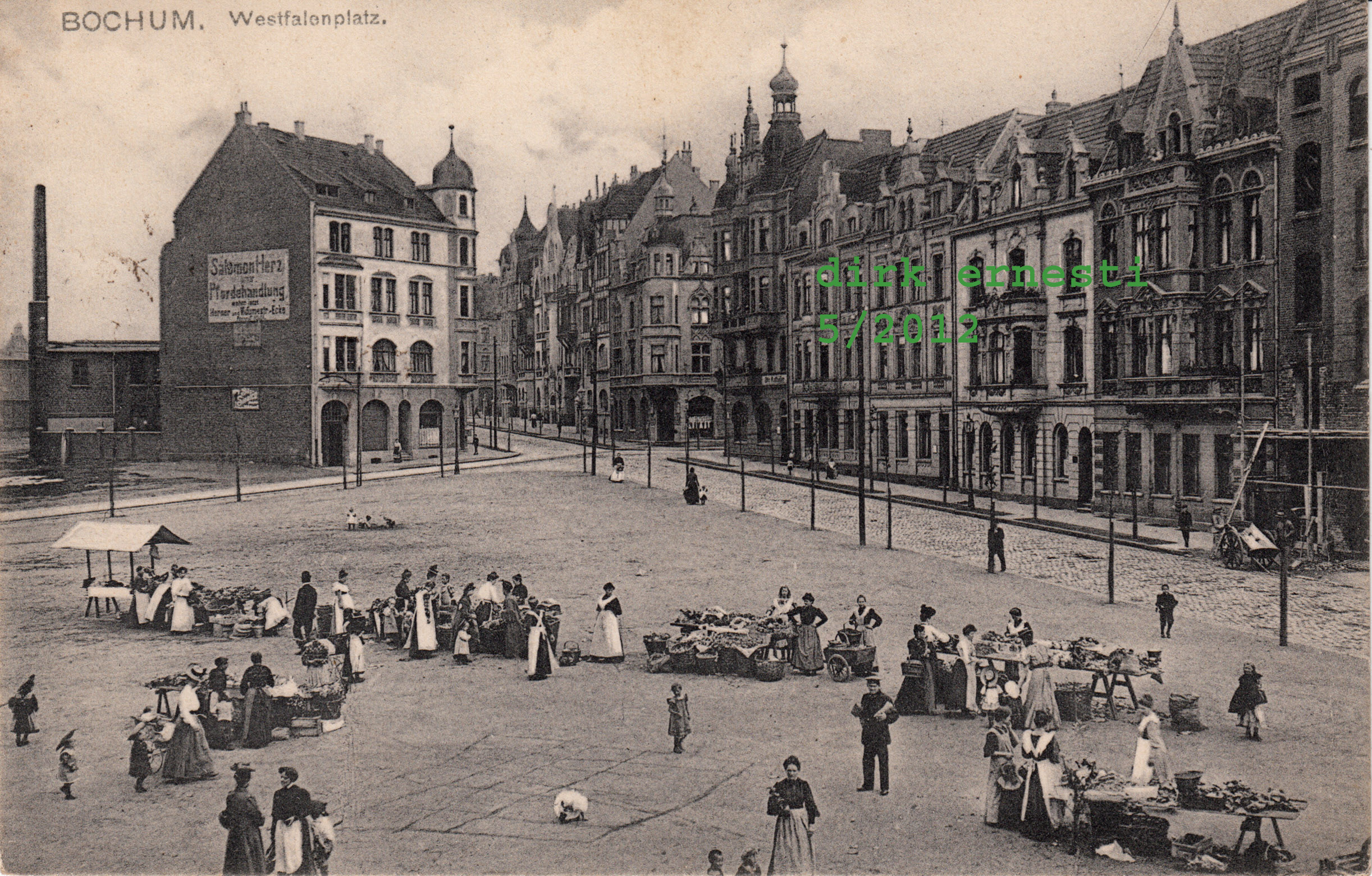 Ansichtskarte von 1907. Hier wohl fälschlich als "Westfalenstraße" bezeichnet. Perspektive ähnlich der dem obigen Foto, links Kronenstraße. (Karte noch größer sehen - hier klicken!) |