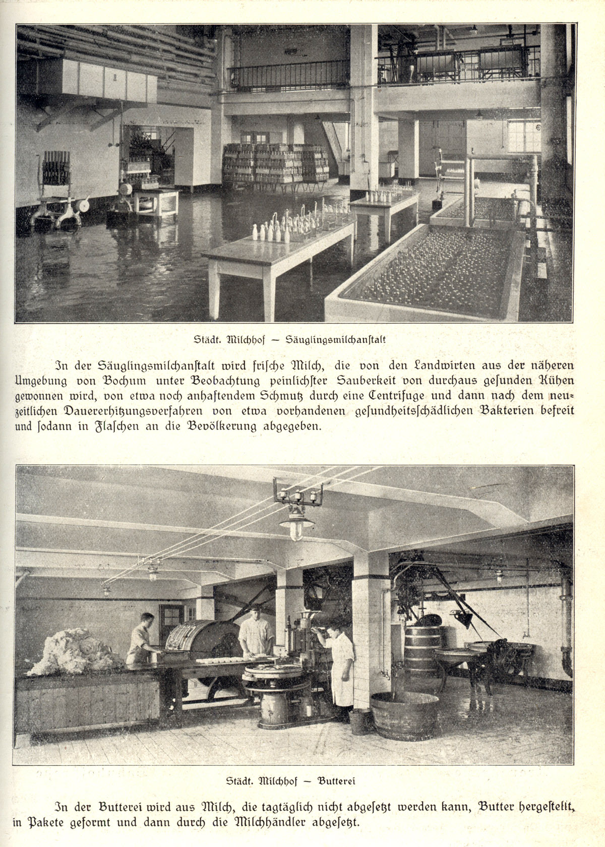 (Quelle: wie oben) interessante Aufnahmen aus der Säuglingsmilchanstalt sowie der Butterei - untere Aufnahme. (Foto noch größer sehen - klicken!) |