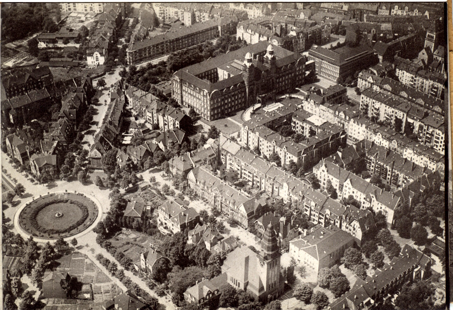 Aus: "Bochum - ein Heimatbuch in Bildern, 1946, Seite 6" Mit Melanchthonkirche und Bülowplatz am oberen, linken Bildrand (bei Vergrösserung zu sehen) (Foto noch größer ansehen - hier klicken!) |