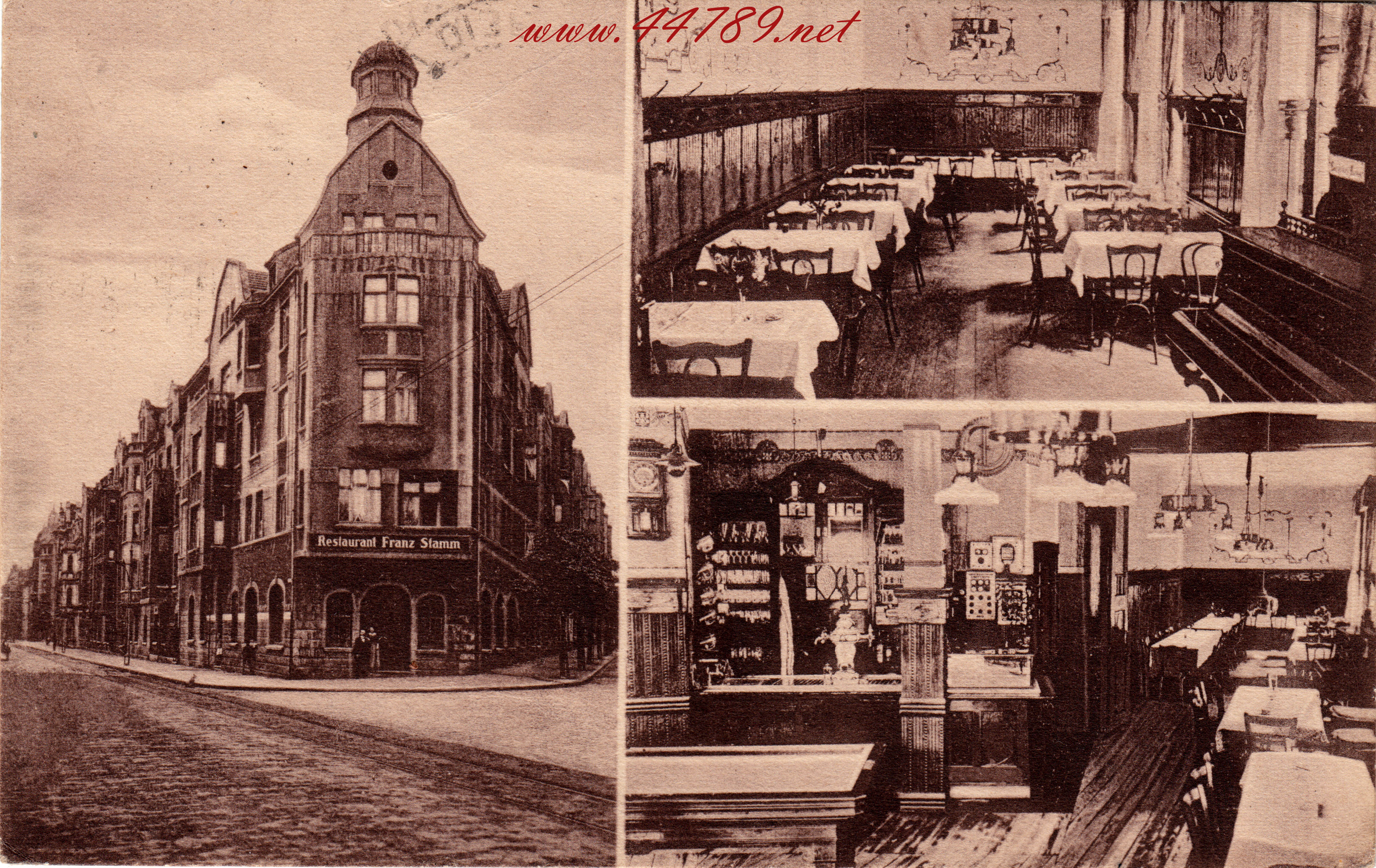 Ansichtskarte, hergestellt 1910. Innenansicht, koloriert. Text rückseitig: Hotel Rest.. Besitzer Aug. Stüermann. Elektrisches Licht - Zentralheizung - Billiard-Salon. 2 Min. vom Hauptbahnhof. Täglich Künstler-Konzert. Zimmer von 2,50 Mk. an. (noch größer sehen - hier klicken!) |