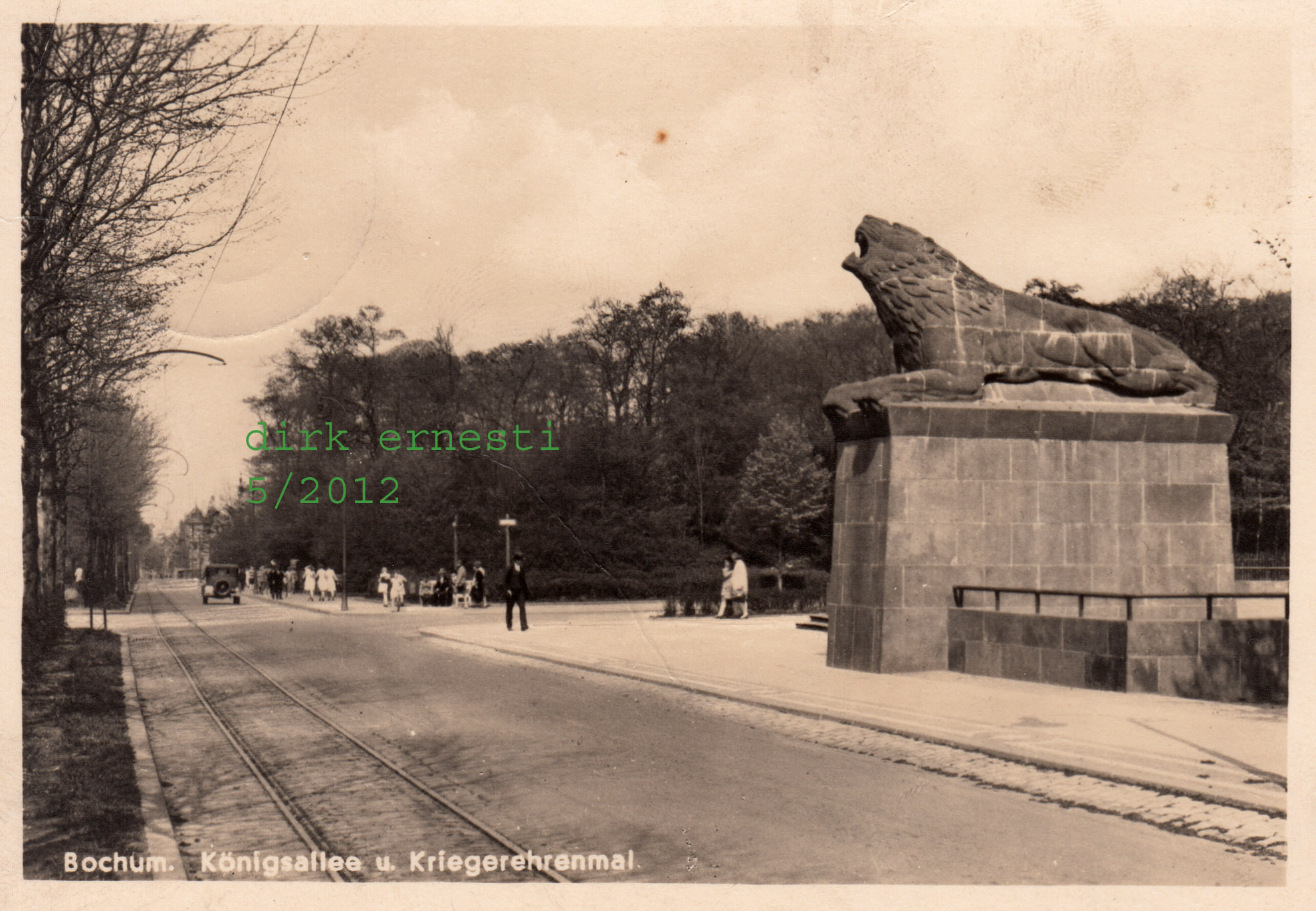 Am Kriegerehrenmal ("Der Löwe") vor dem Lyzeum II, heute Schillerschule, Blick stadtauswärts. (Foto noch größer sehen - hier klicken!) |