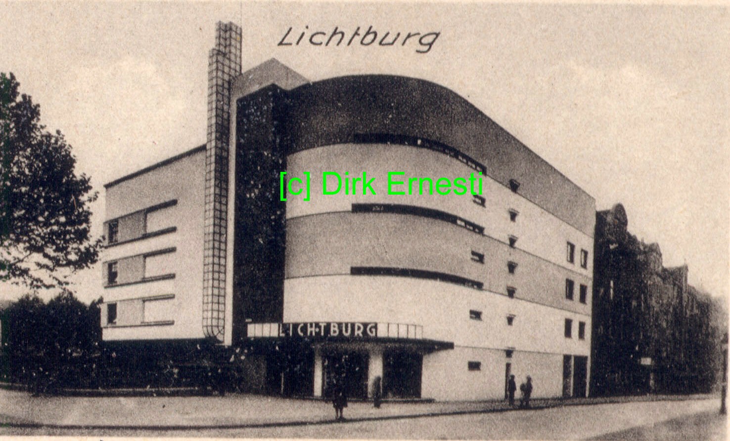 Die vier oberen Ansichten stammen aus der Foto- bzw. Ansichtskartensammlung von Dirk Ernesti, 2 darunter aus dem Nachlaß Oexle bzw. aus der Sammlung Eberhard Brand. Anmerkungen zu Filmaufführungsdaten von: M. Bömelburg.