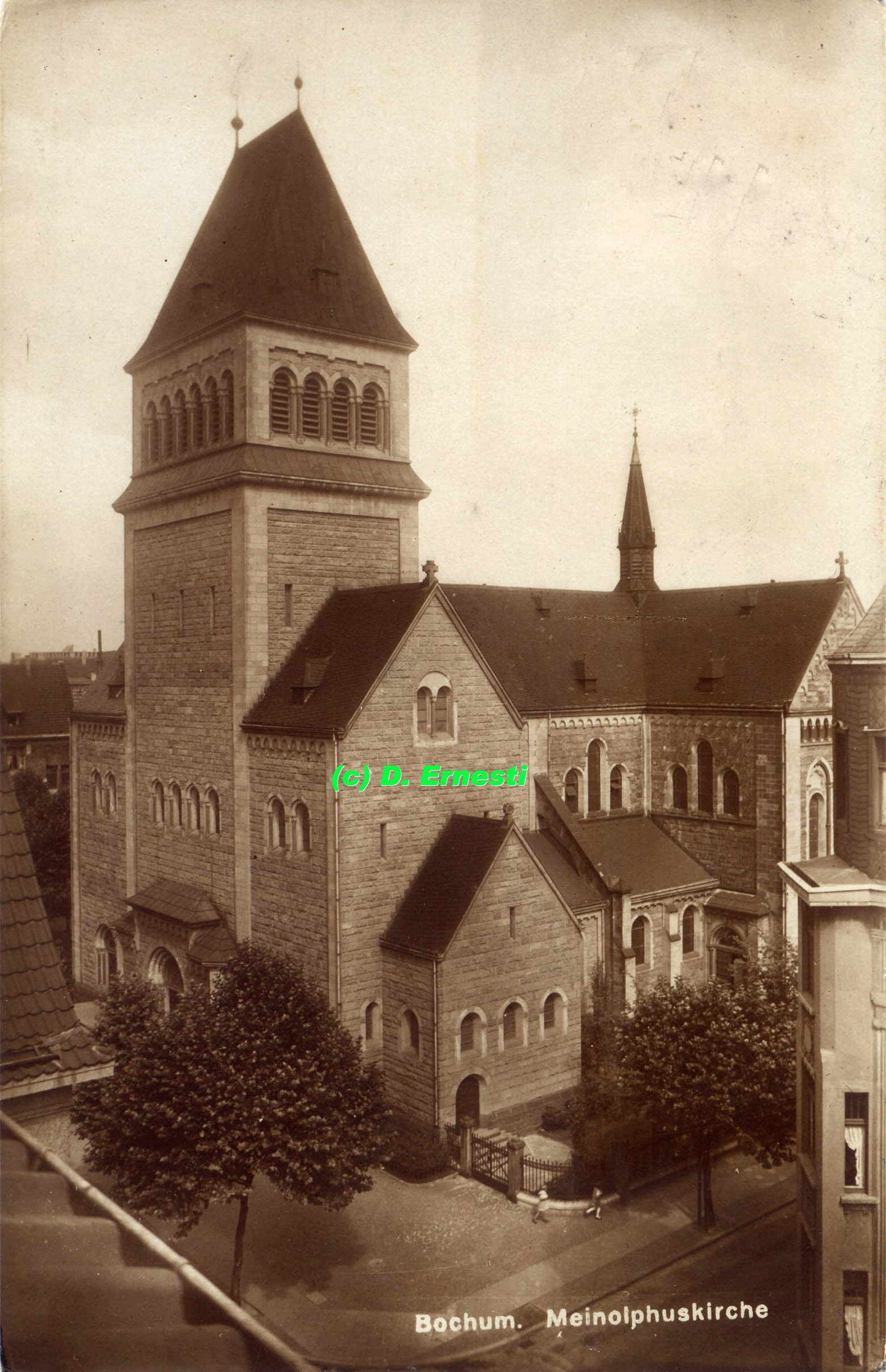 auf einer speziellen Postkarte, um 1949 hergestellt. Rückseitiger Text: "1909-1949. Jubiläums-Werkstein für den Wiederaufbau von St. Meinolphus-Bochum". Der vollständige Text: siehe 2. Bild links unten. (Foto noch größer sehen - hier klicken!) |