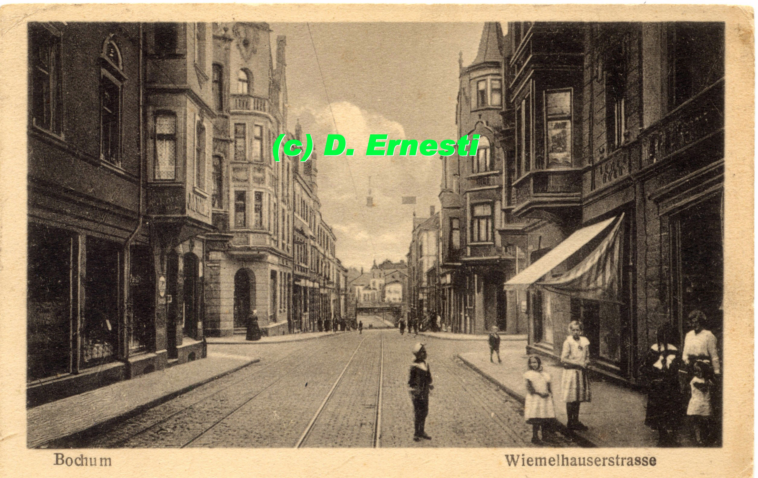 (auf einer Postkarte von 1914) befanden sich an der Wiemelhauser Straße, nahe Kreuzung Steinring/Waldring. Im Hintergrund der Aufnahme sieht man Villen/Häuser an der Querenburger Straße 36-40 nahe der BP Forschung bzw. gegenüber dem Schulzentrum. (Foto noch größer sehen - klicken!) |