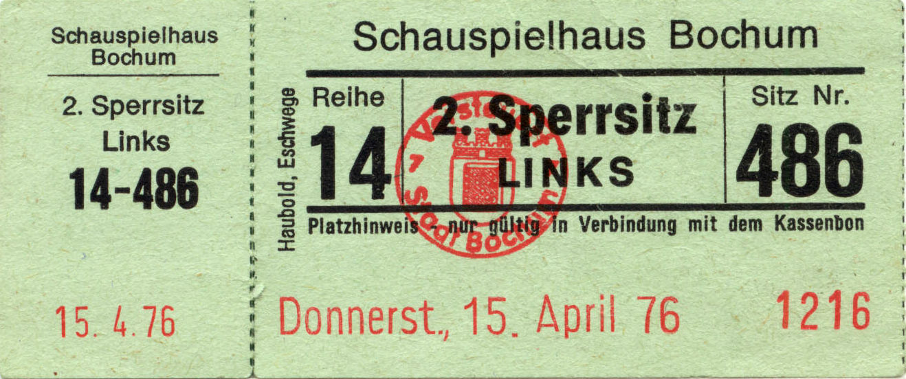 (vom 15. April 1976) das müßte für das Stück "Kleiner Mann, was nun?" von Hans Fallada unter Peter Zadek gewesen sein. (Groß ansehen - klicken!) |