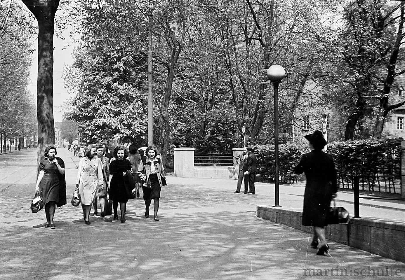 Privatfoto von Martin Schulte, aufgenommen 1943. Richtung Stadt gesehen. Rechts die markante Front vom Heimatmuseum. (Foto noch größer sehen - hier klicken!) |