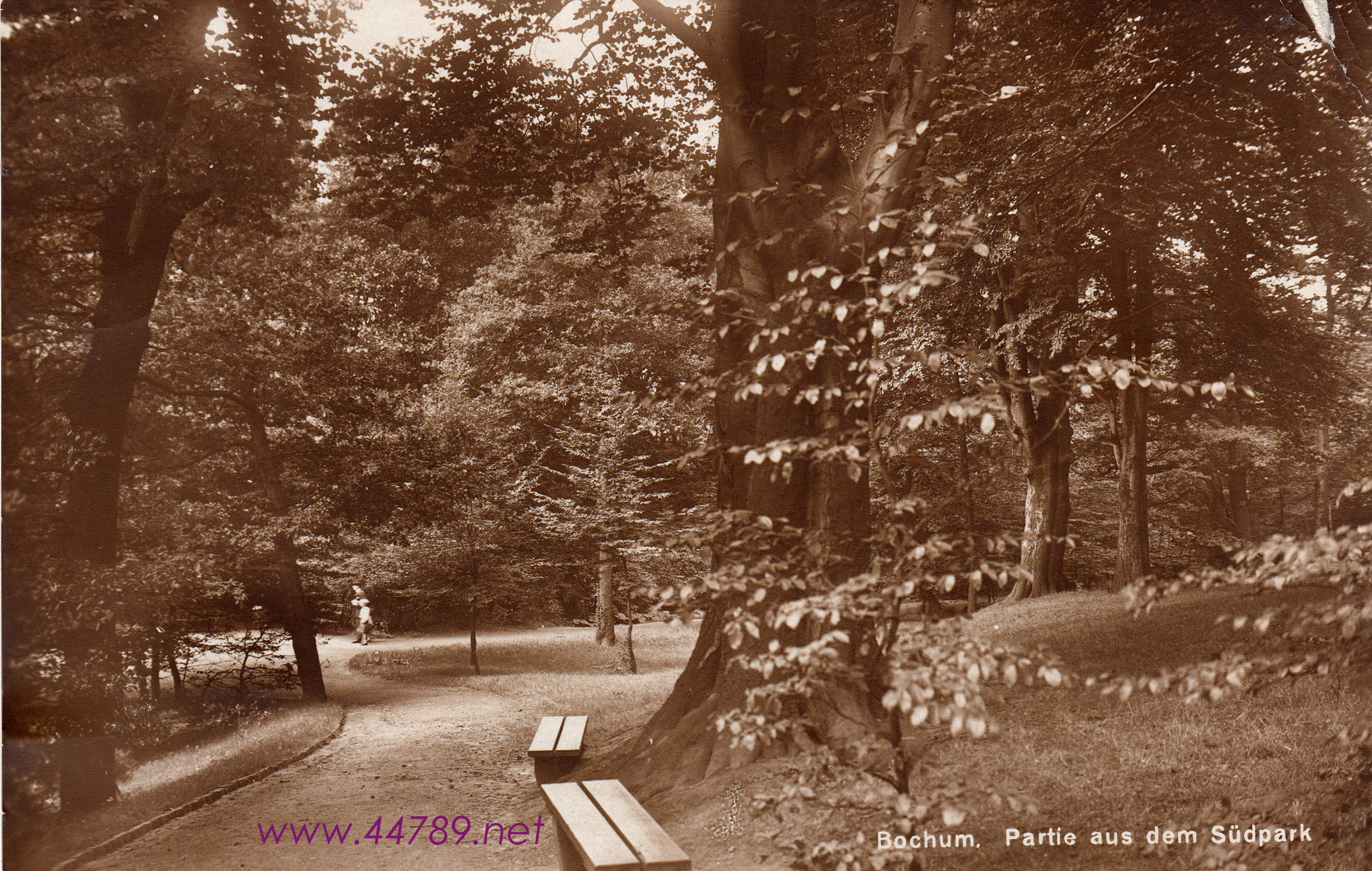 auf einer Postkarte von 1921. hier der westliche Parkteil nahe der (später angelegten) Marschner Straße/Hunscheidtstraße - damals gabs hier noch einen kleinen Teich, der heute leider versiegt ist (siehe ähnl. Ansichten weiter unten) (Foto noch größer sehen - hier klicken!) |