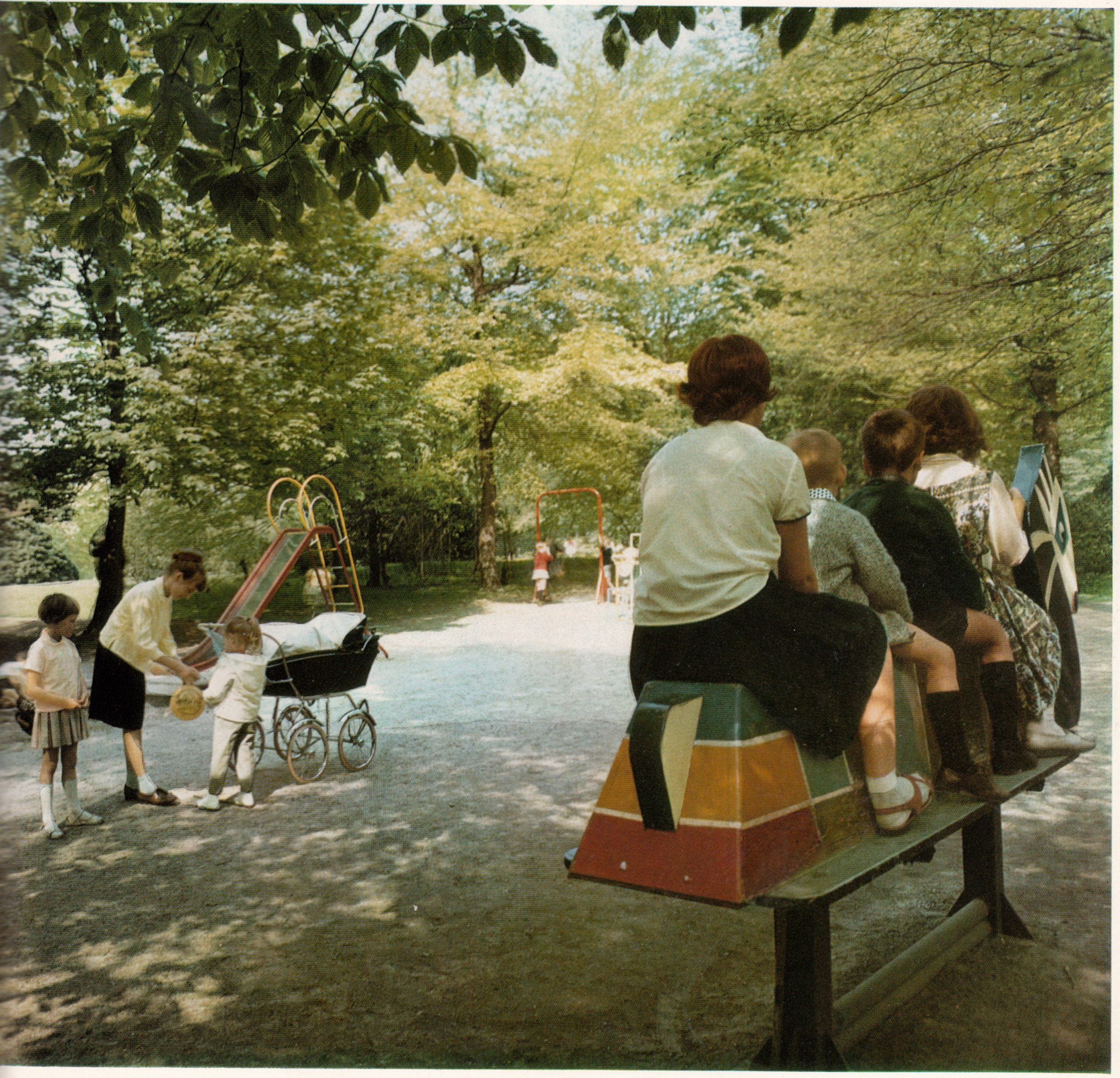Privates Dia von 1963. Aufnahmestandort: nahe dem kleinen Spielplatz im westlichen Parkteil nahe dem Waldring, im Hintergrund rechts sieht man eine Litfaßsäule am Waldring. (Foto noch größer sehen - hier klicken!) |