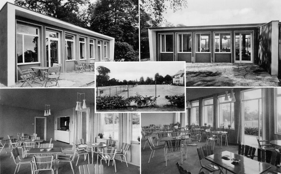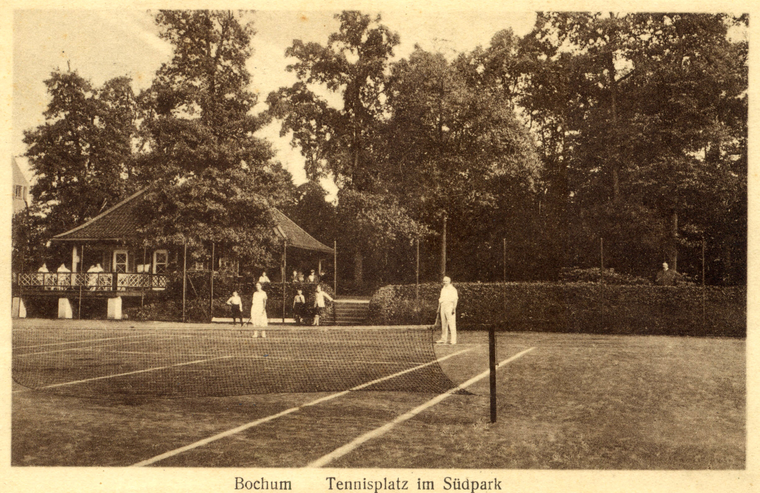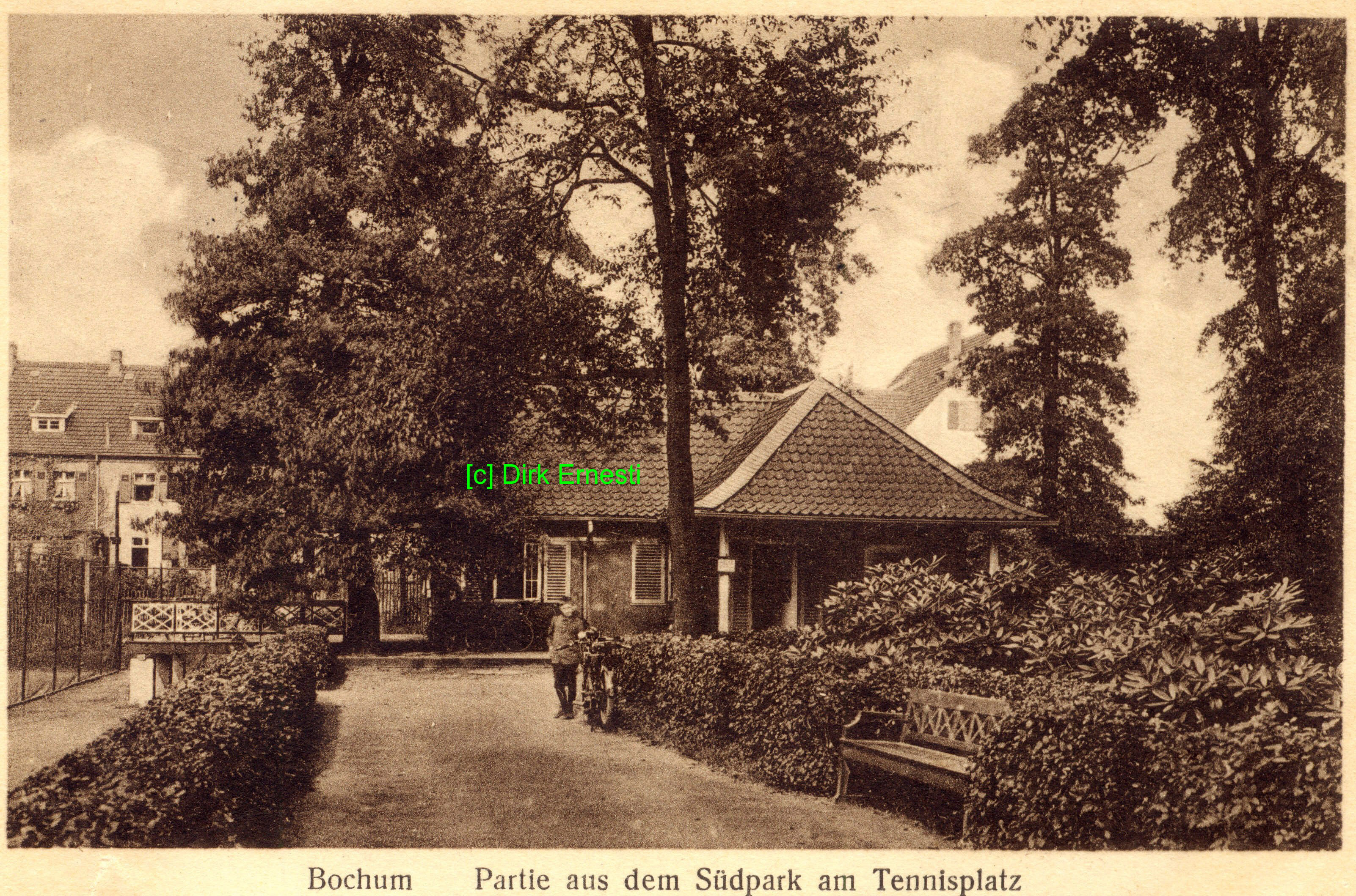 Ansichtskarte um 1930. Das Tennishaus des T.C. Rechen im Südpark. Mehr auch hier: Link zur Webseite des TC Rechen |
