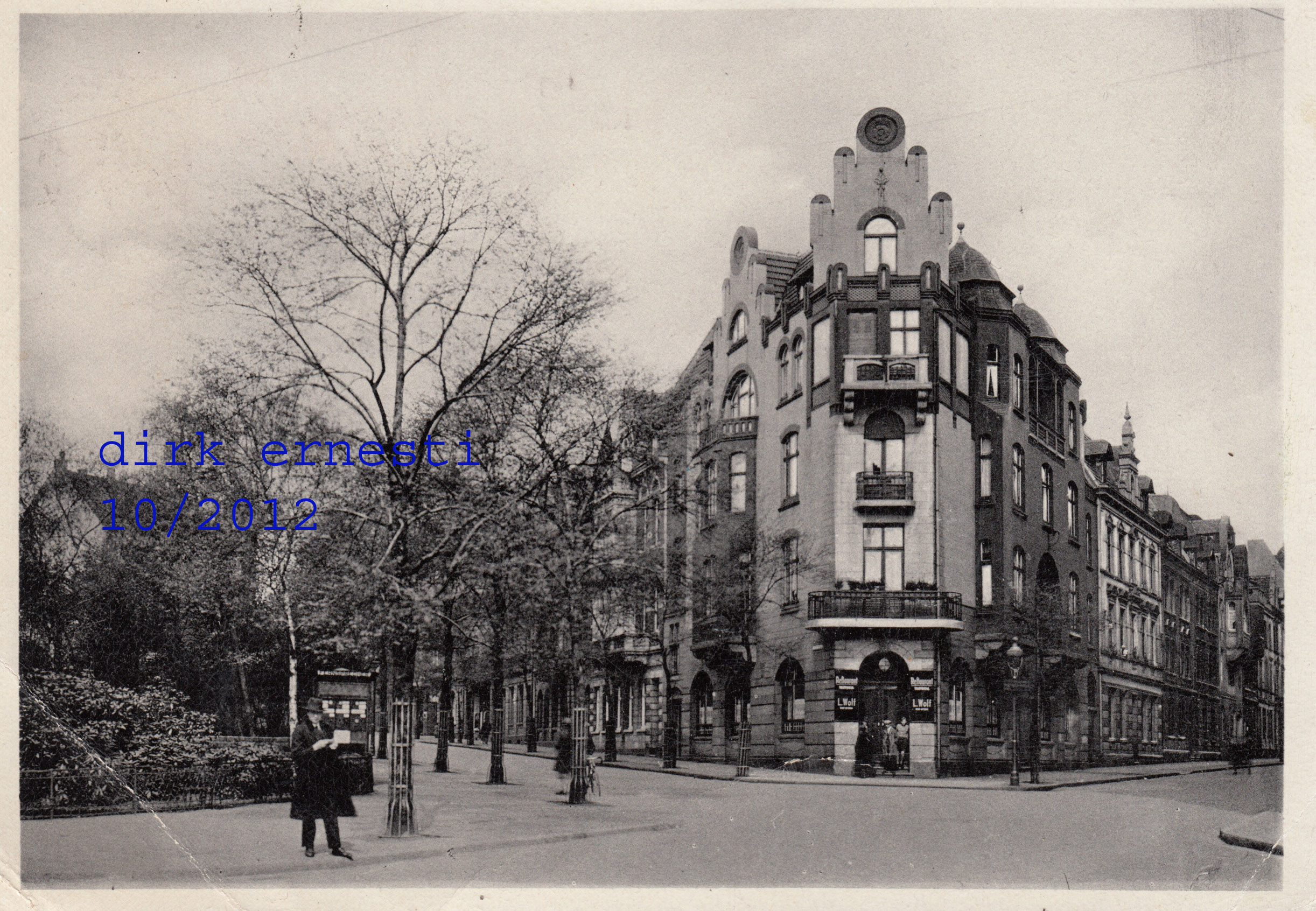 Ansichtskarte, gelaufen 1916 als Feldpost. Rechts sieht man ein Eckhaus an der Ottostraße (Oskar-Hoffmann-Str.) - heute GLS-Bank. Der Blick geht hier in die Ottostraße, Richtung Universitätsstraße - im Eckhaus links befand sich später das Lokal "Teutonia", siehe Bild oberhalb (Foto noch größer sehen - hier klicken!) |